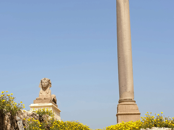 Next, explore the remains of the Serapeum Temple, once a grand structure dedicated to Serapis, the Greco-Egyptian deity. While the temple itself is long gone, its legacy lives on through Pompey’s Pillar, a towering granite column that rises nearly 30 meters into the sky, standing as a symbol of ancient Roman influence in Alexandria.