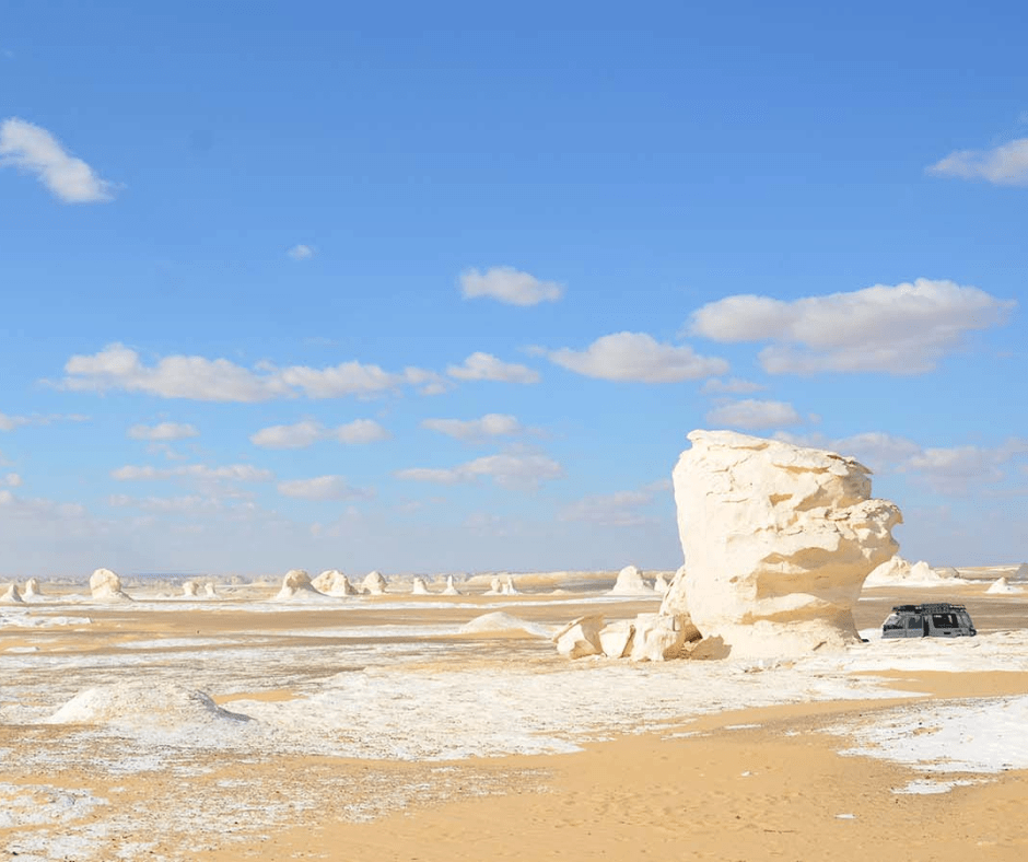Experience the surreal beauty of Egypt’s White Desert on a full-day adventure that feels like stepping onto another planet. This extraordinary landscape, located in the Western Desert near Farafra, is famous for its otherworldly white chalk formations sculpted over millennia by wind and sand.